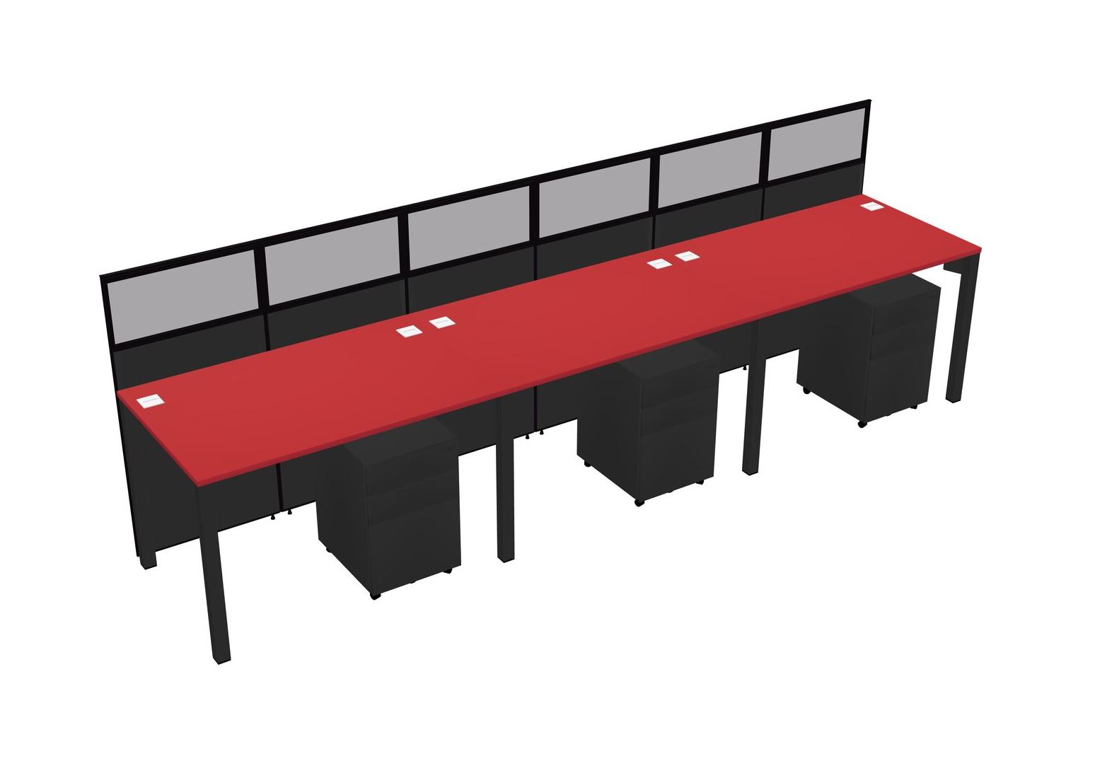 Prism Red Shared Rectangular Office Cubicle Panel System With Mobile Drawers For 3 Persons