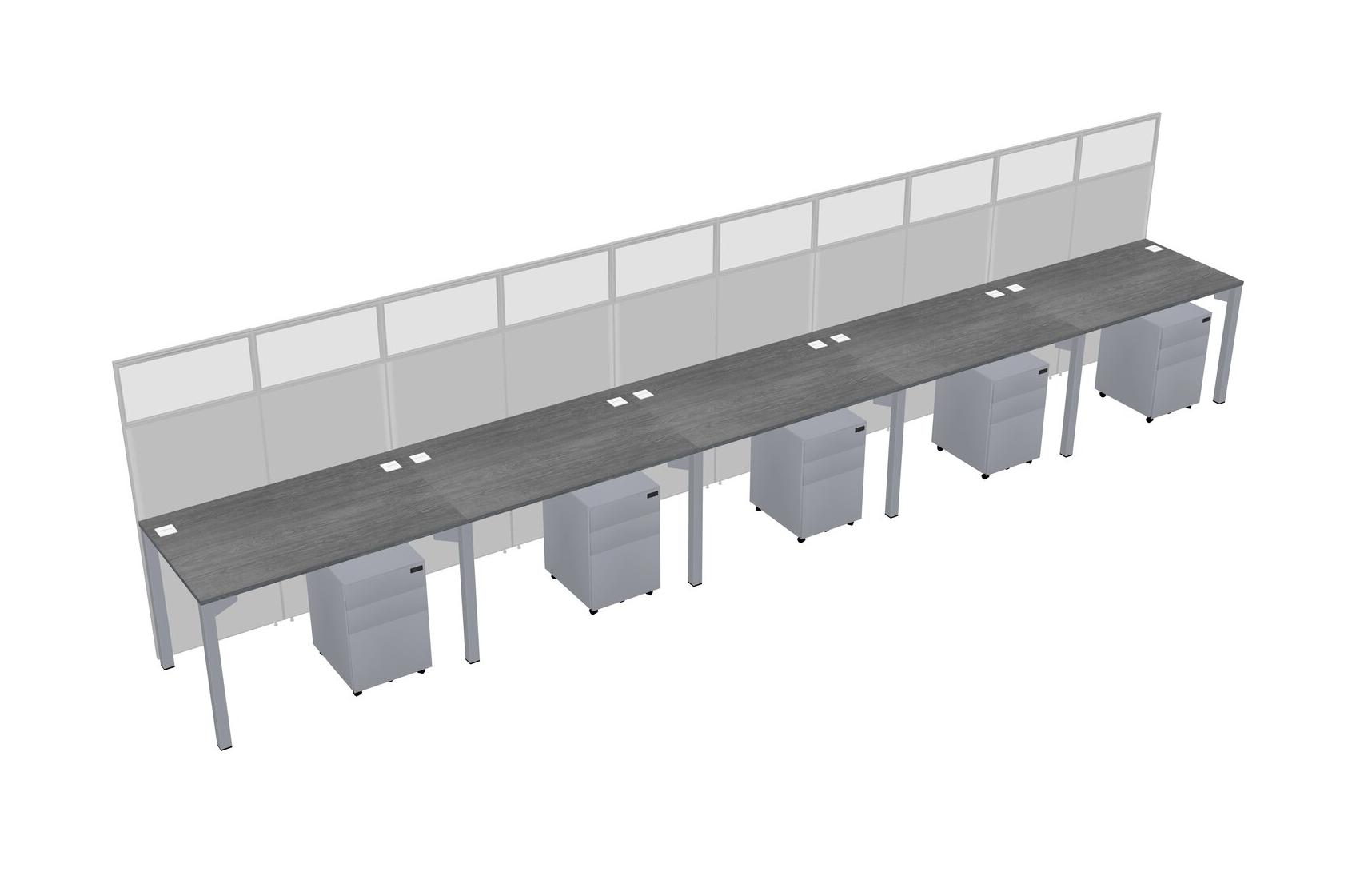 Grey Shared Rectangular Office Cubicle Panel System With Mobile Drawers For 5 Persons