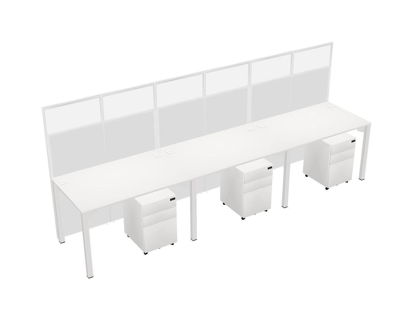 White Shared Rectangular Office Cubicle Panel System With Mobile Drawers For 3 Persons