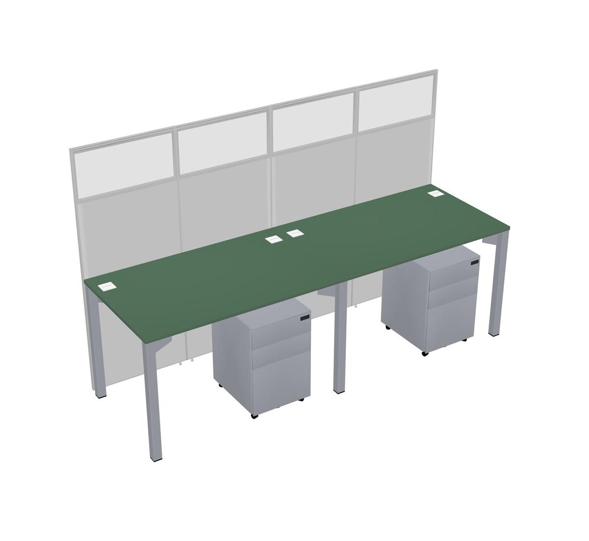 Green Shared Rectangular Office Cubicle Panel System With Mobile Drawers For 2 Persons