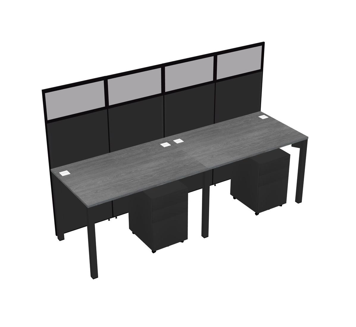 Grey Shared Rectangular Office Cubicle Panel System With Mobile Drawers For 2 Persons