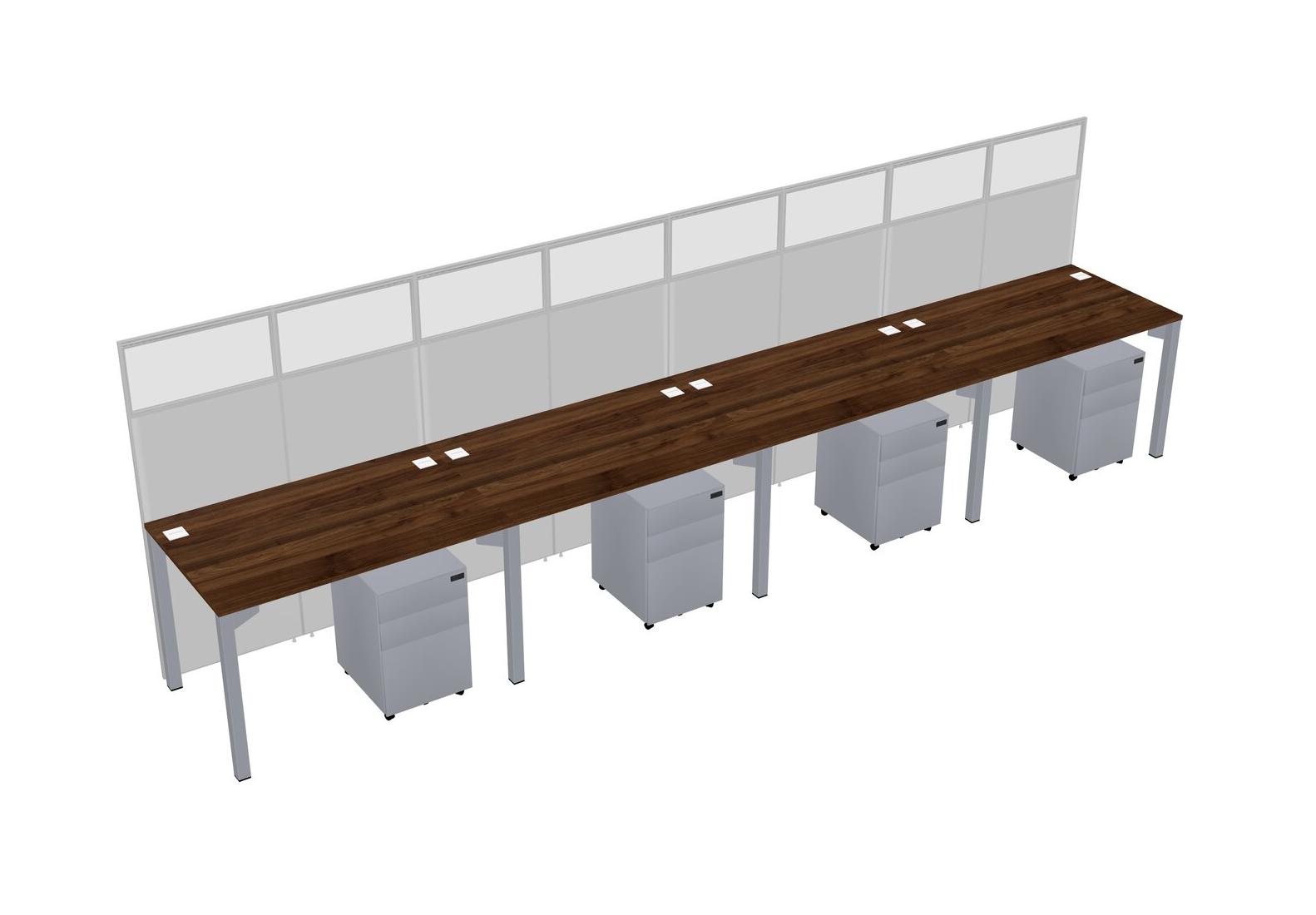 Columbia Walnut Shared Rectangular Office Cubicle Panel System With Mobile Drawers For 4 Persons