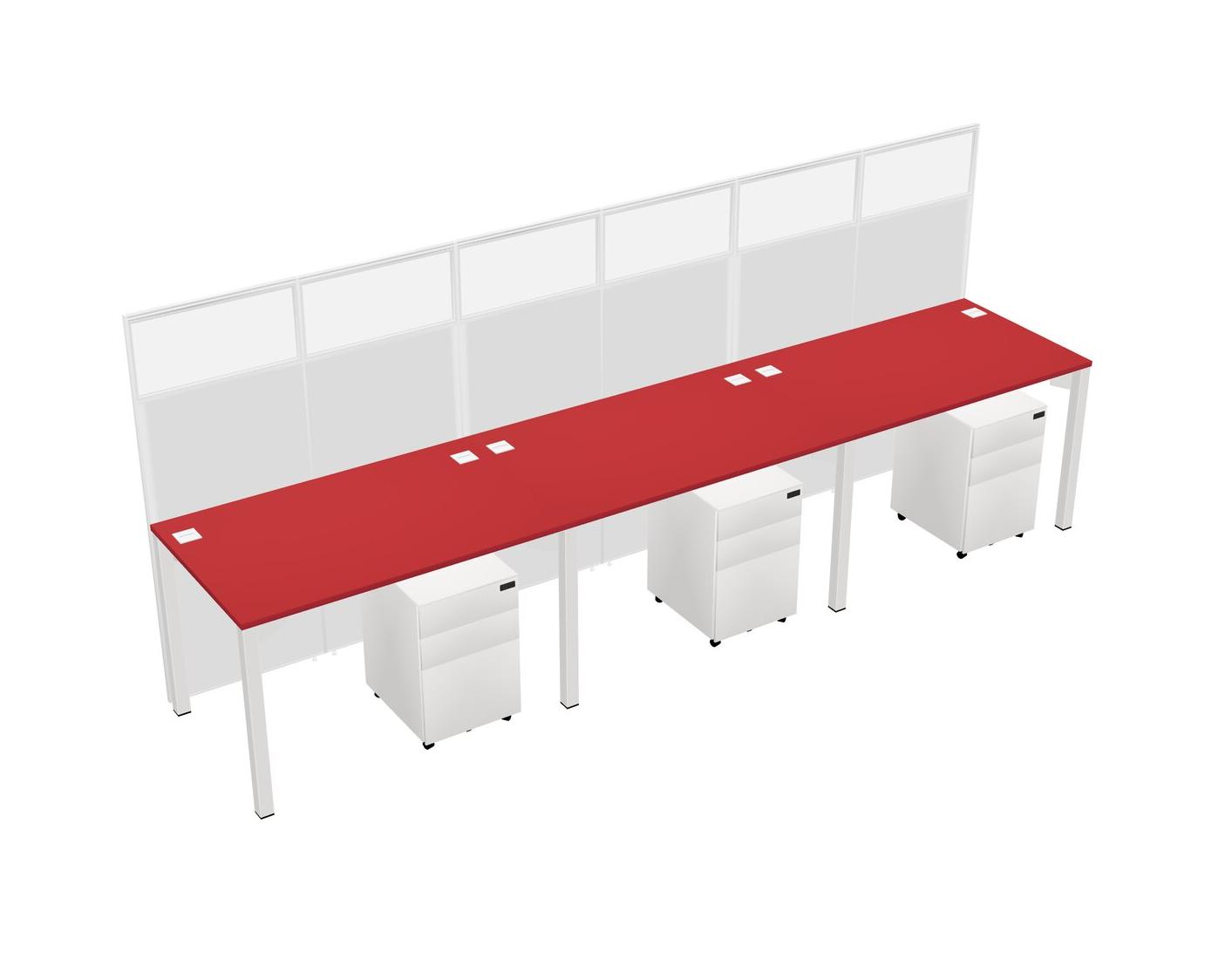 Prism Red Shared Rectangular Office Cubicle Panel System With Mobile Drawers For 3 Persons