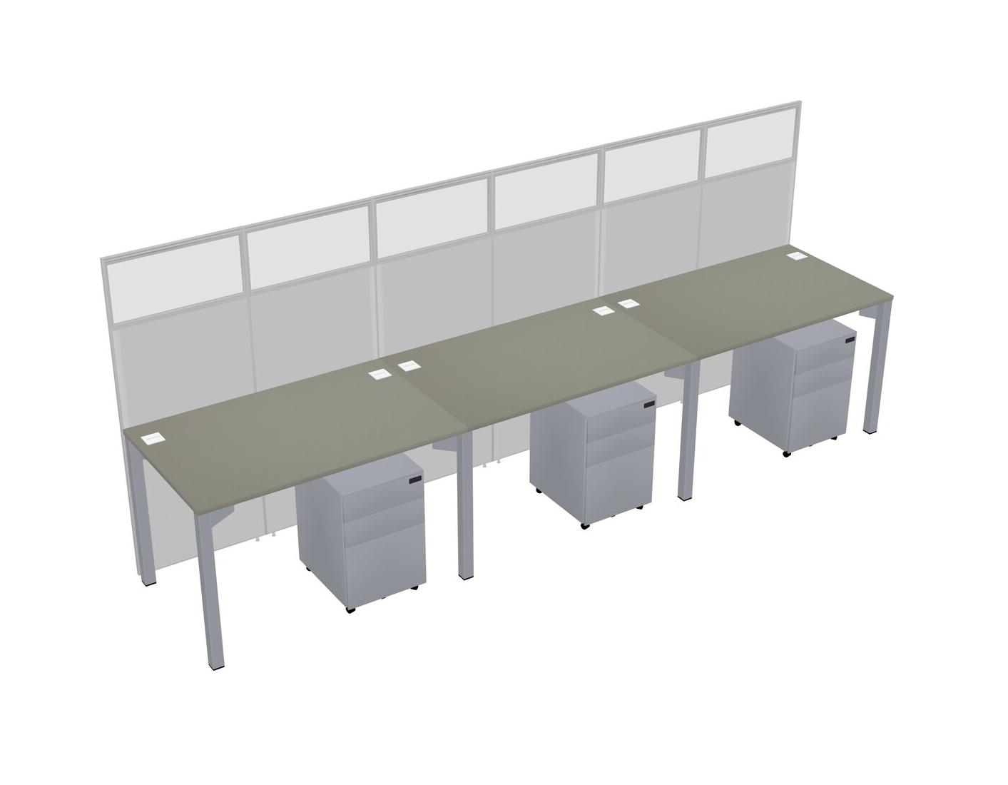 Grey Shadows Shared Rectangular Office Cubicle Panel System With Mobile Drawers For 3 Persons