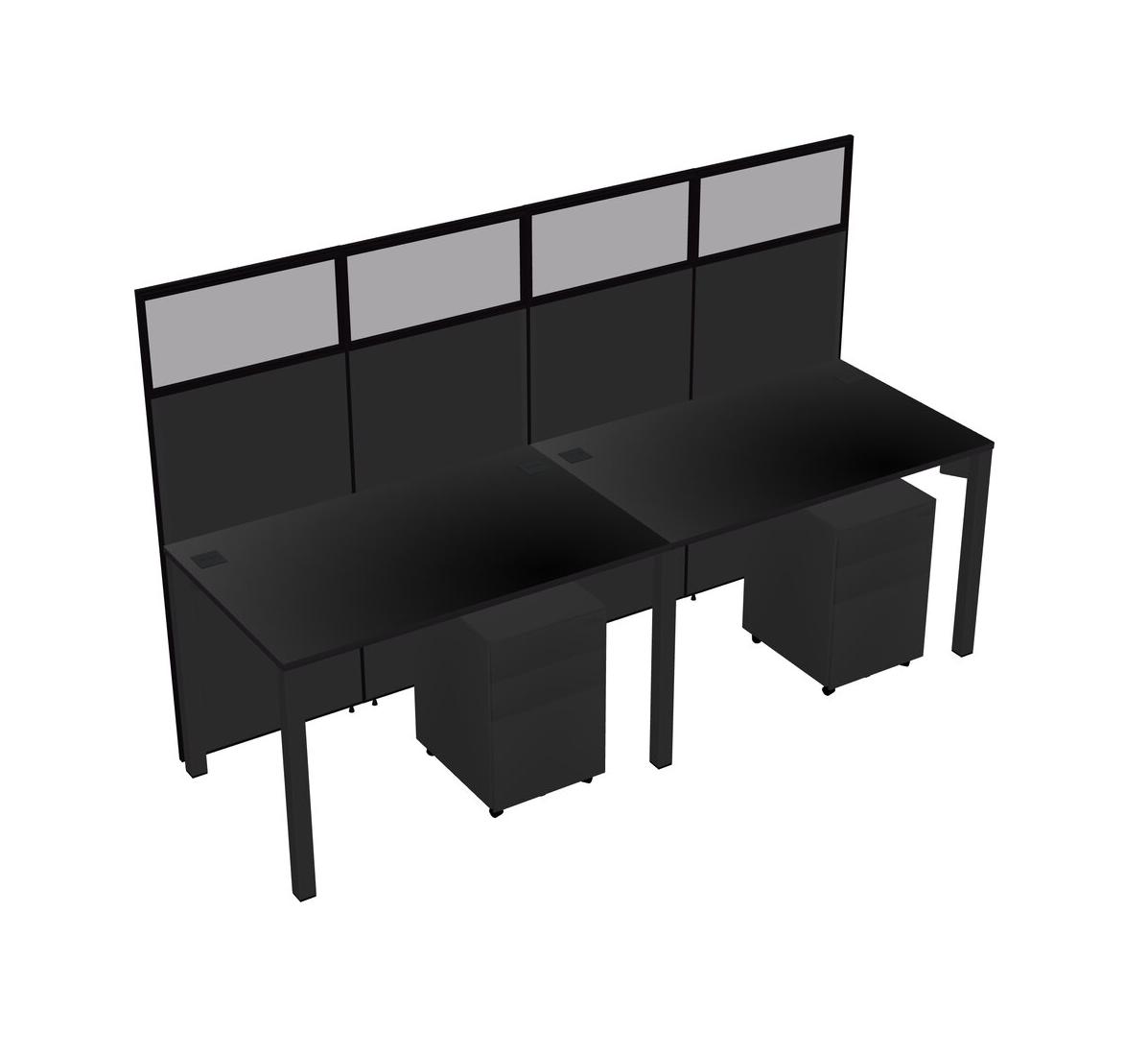 Black Shared Rectangular Office Cubicle Panel System With Mobile Drawers For 2 Persons