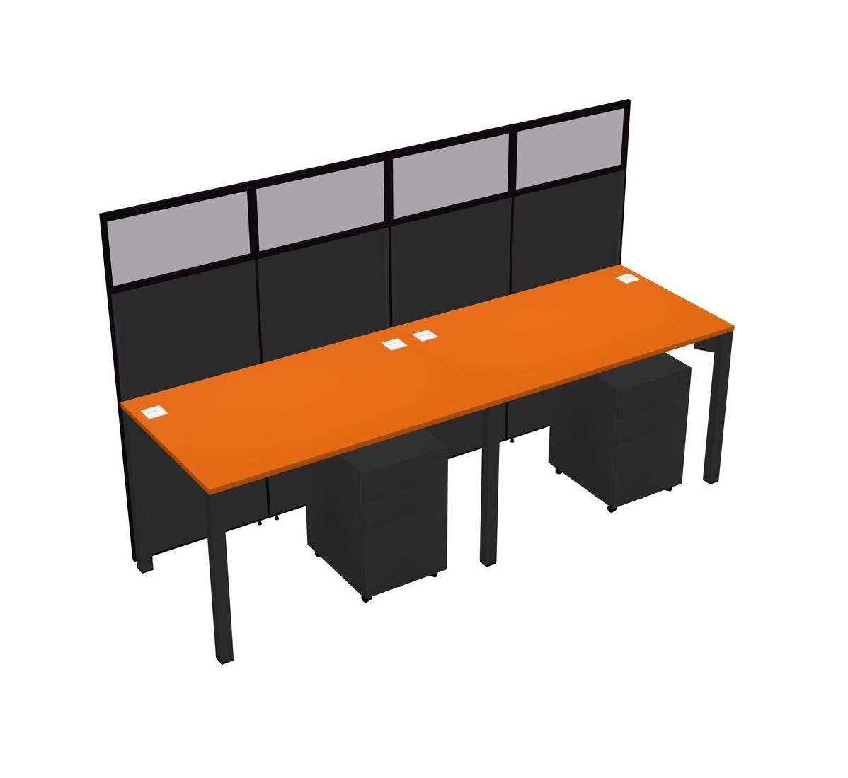 Orange Shared Rectangular Office Cubicle Panel System With Mobile Drawers For 2 Persons