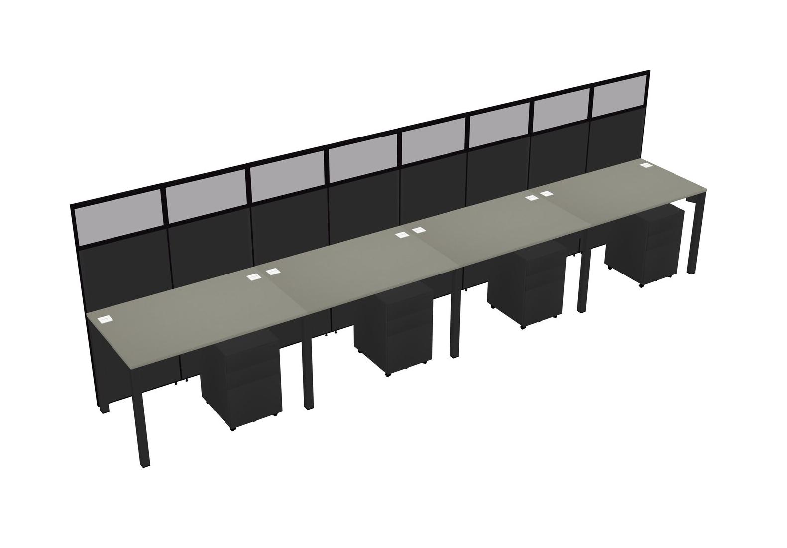 Grey Shadows Shared Rectangular Office Cubicle Panel System With Mobile Drawers For 4 Persons
