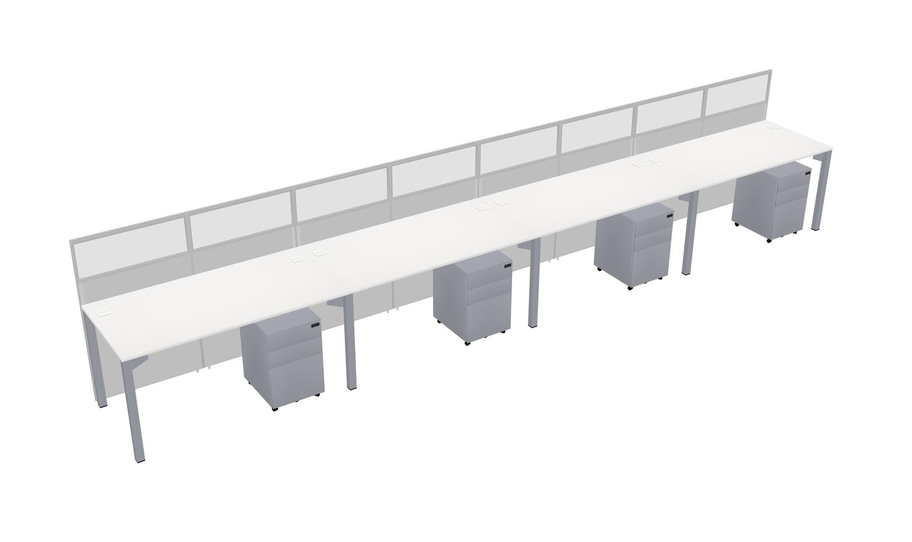 White Shared Rectangular Office Cubicle Panel System With Mobile Drawers For 4 Persons
