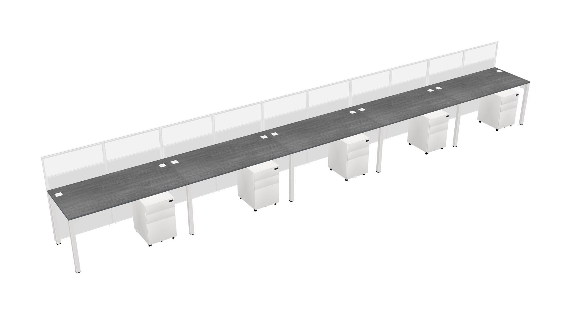 Grey Shared Rectangular Office Cubicle Panel System With Mobile Drawers For 5 Persons
