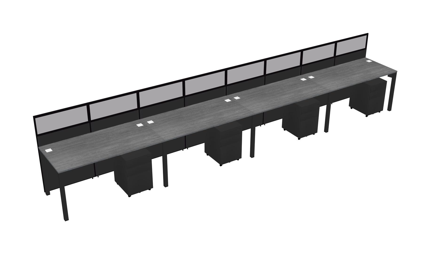 Grey Shared Rectangular Office Cubicle Panel System With Mobile Drawers For 4 Persons