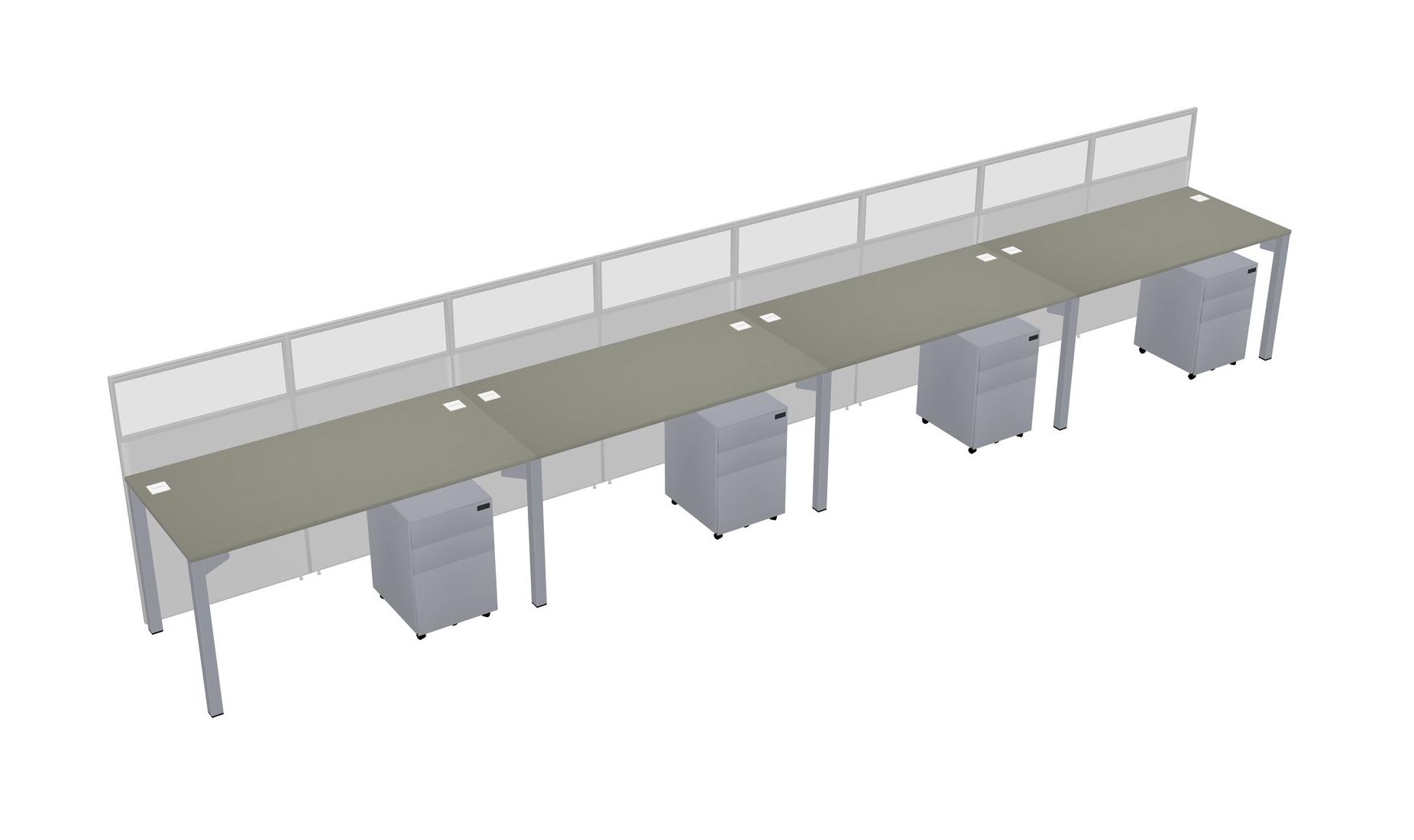 Grey Shadows Shared Rectangular Office Cubicle Panel System With Mobile Drawers For 4 Persons