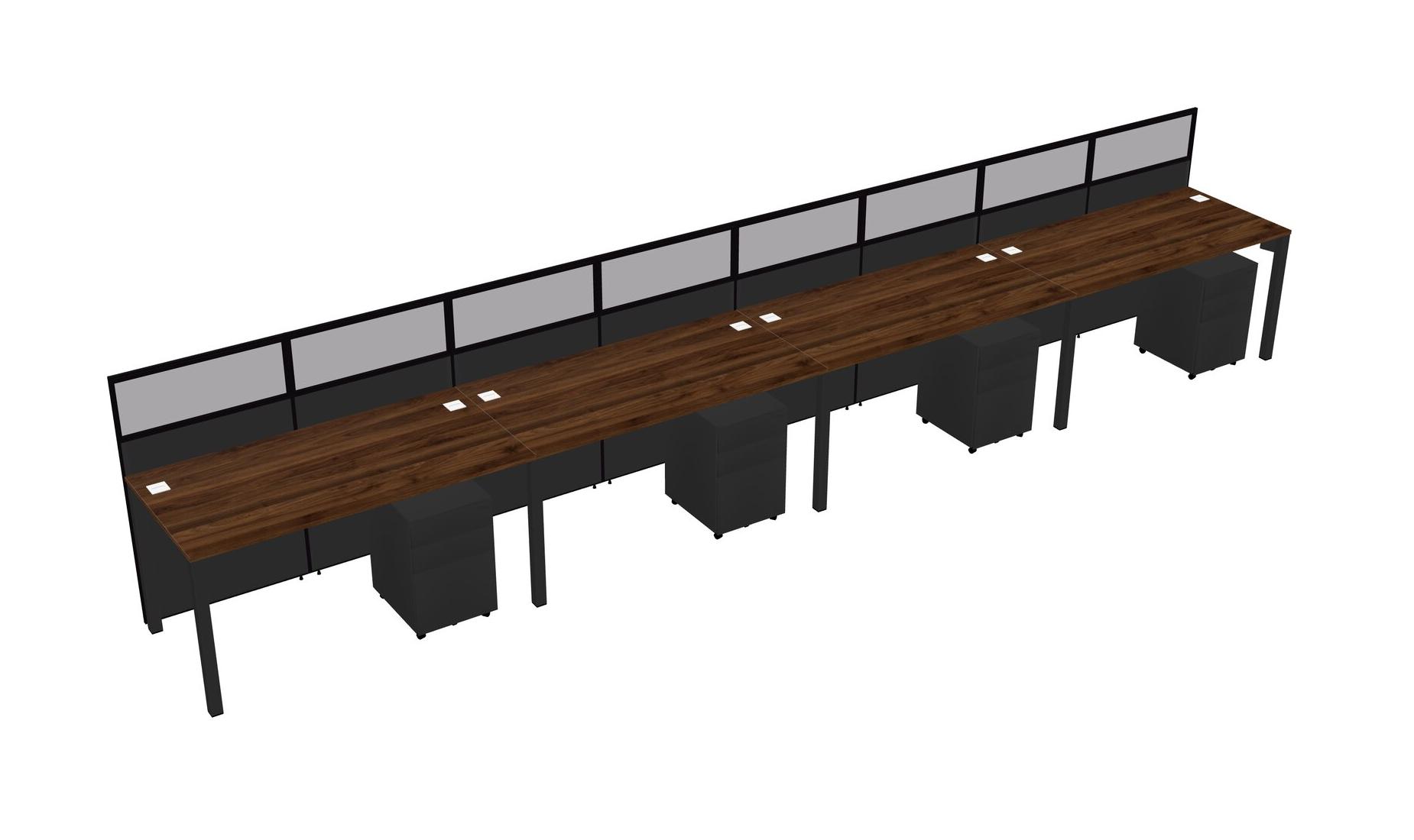 Columbia Walnut Shared Rectangular Office Cubicle Panel System With Mobile Drawers For 4 Persons