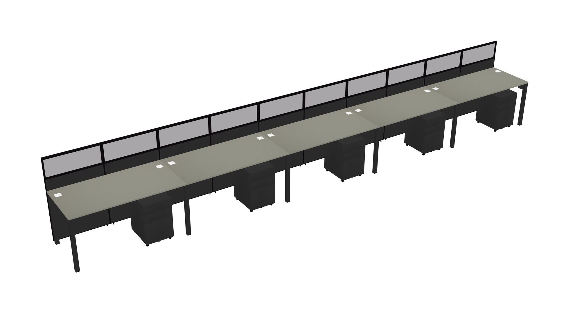 Grey Shadows Shared Rectangular Office Cubicle Panel System With Mobile Drawers For 5 Persons