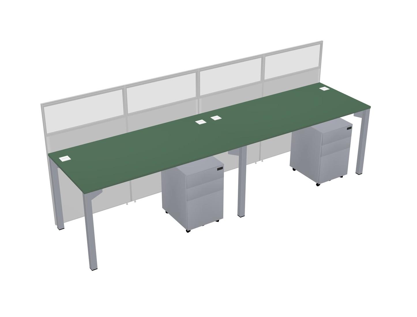 Green Shared Rectangular Office Cubicle Panel System With Mobile Drawers For 2 Persons