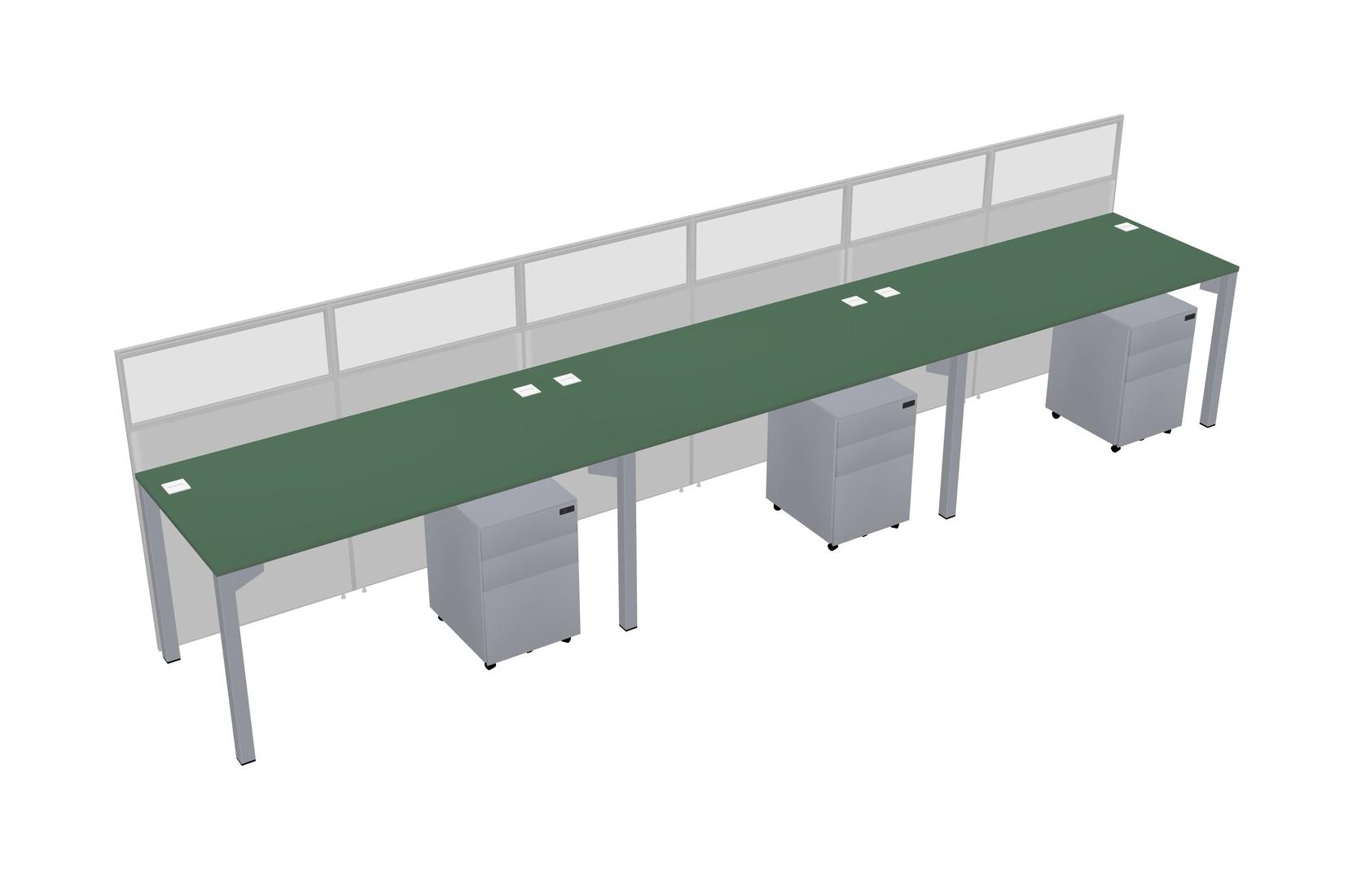Green Shared Rectangular Office Cubicle Panel System With Mobile Drawers For 3 Persons