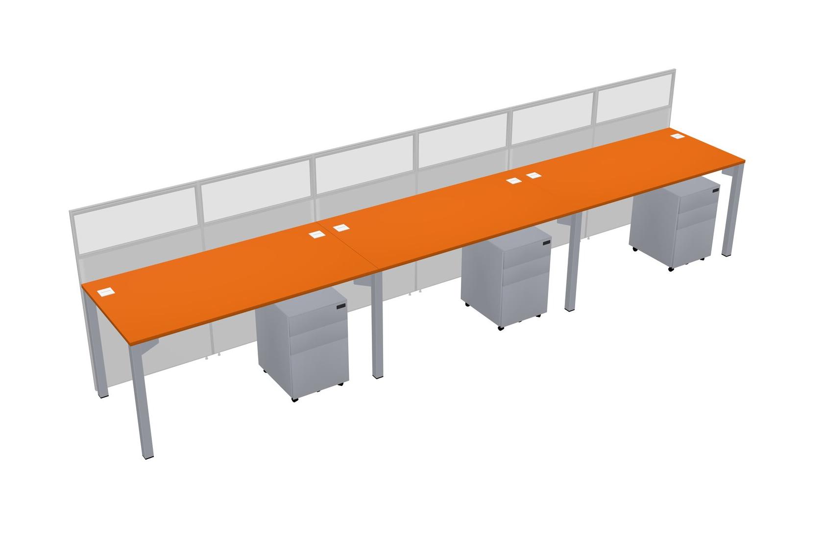Orange Shared Rectangular Office Cubicle Panel System With Mobile Drawers For 3 Persons