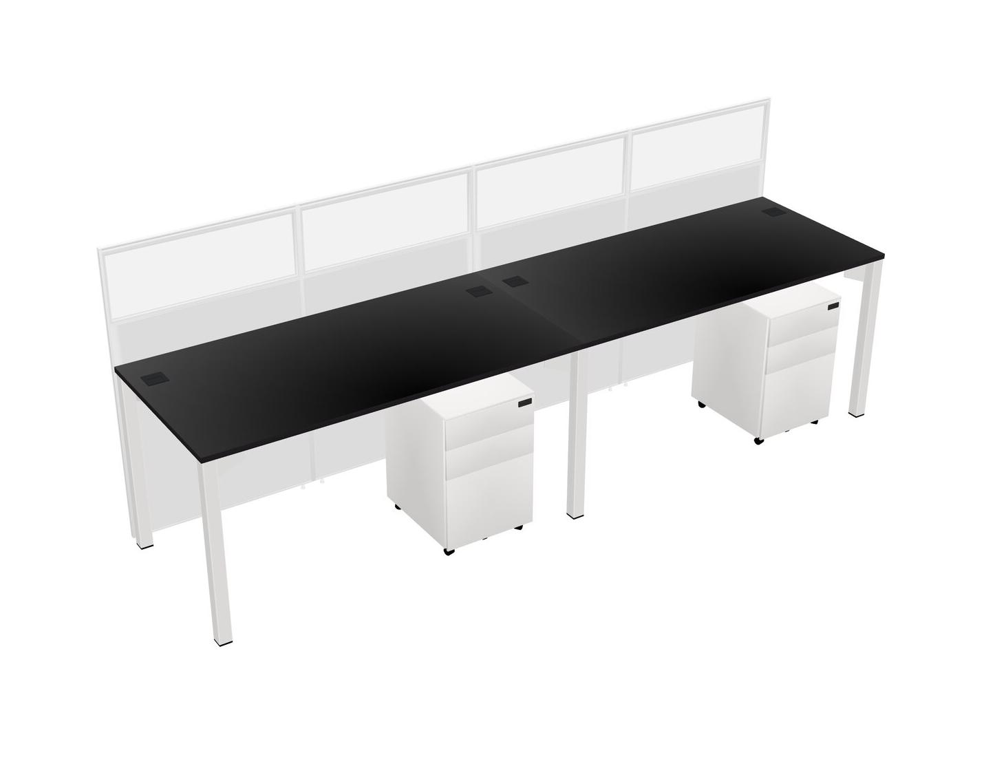 Black Shared Rectangular Office Cubicle Panel System With Mobile Drawers For 2 Persons