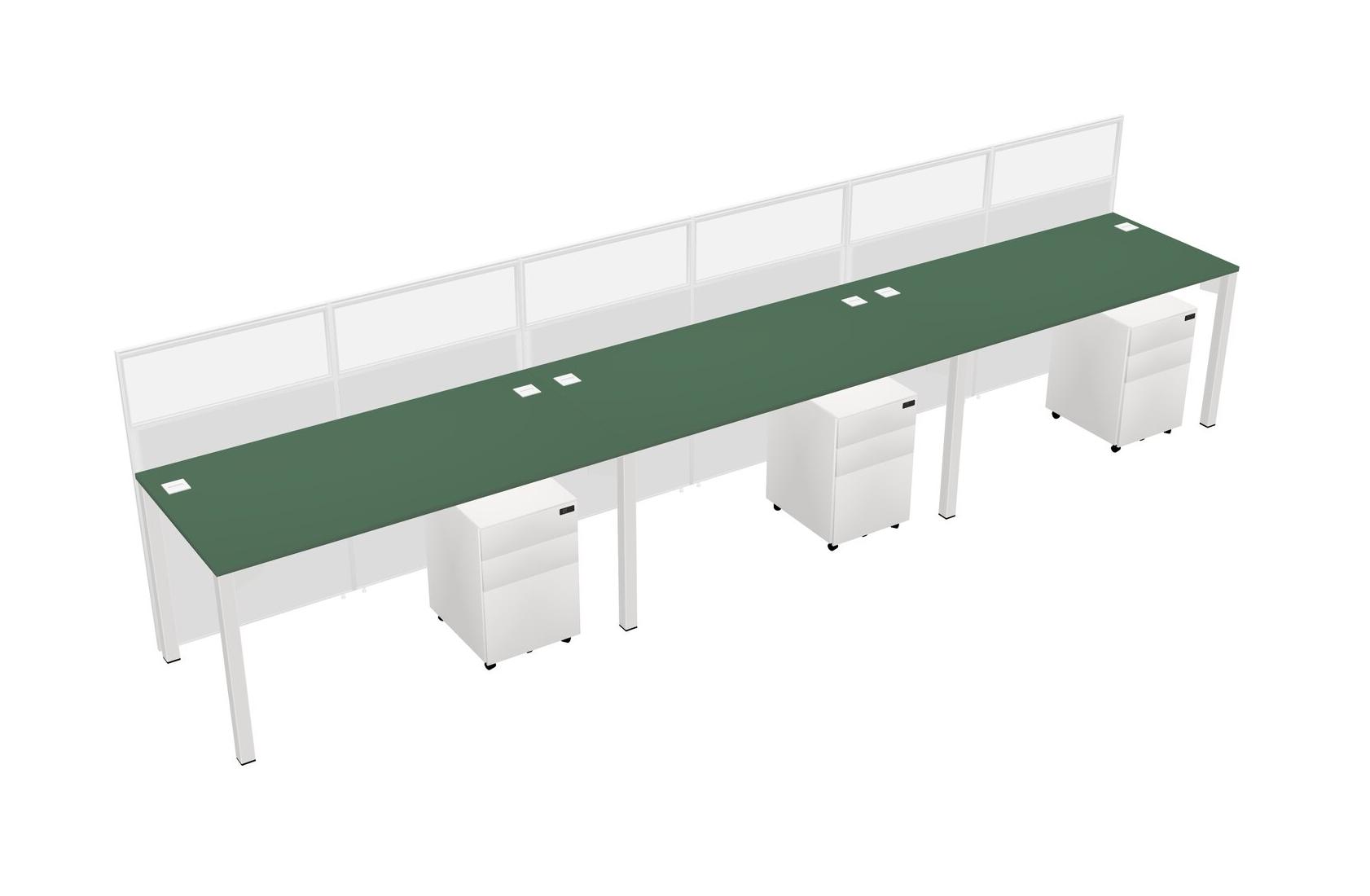 Green Shared Rectangular Office Cubicle Panel System With Mobile Drawers For 3 Persons