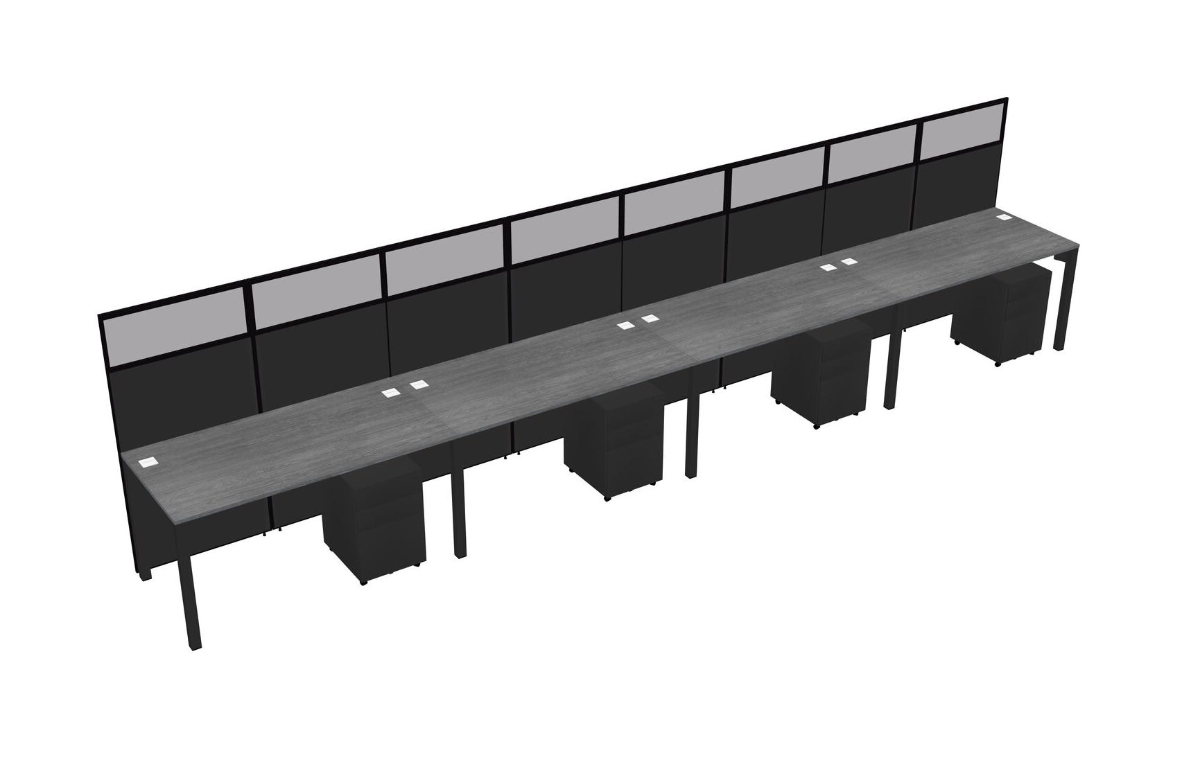 Grey Shared Rectangular Office Cubicle Panel System With Mobile Drawers For 4 Persons