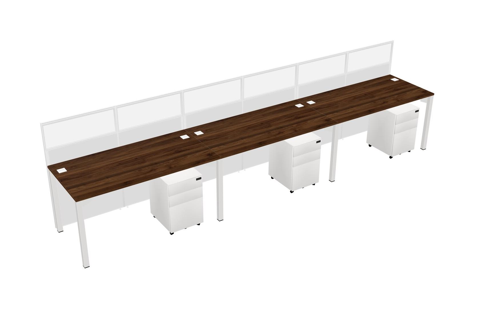 Columbia Walnut Shared Rectangular Office Cubicle Panel System With Mobile Drawers For 3 Persons