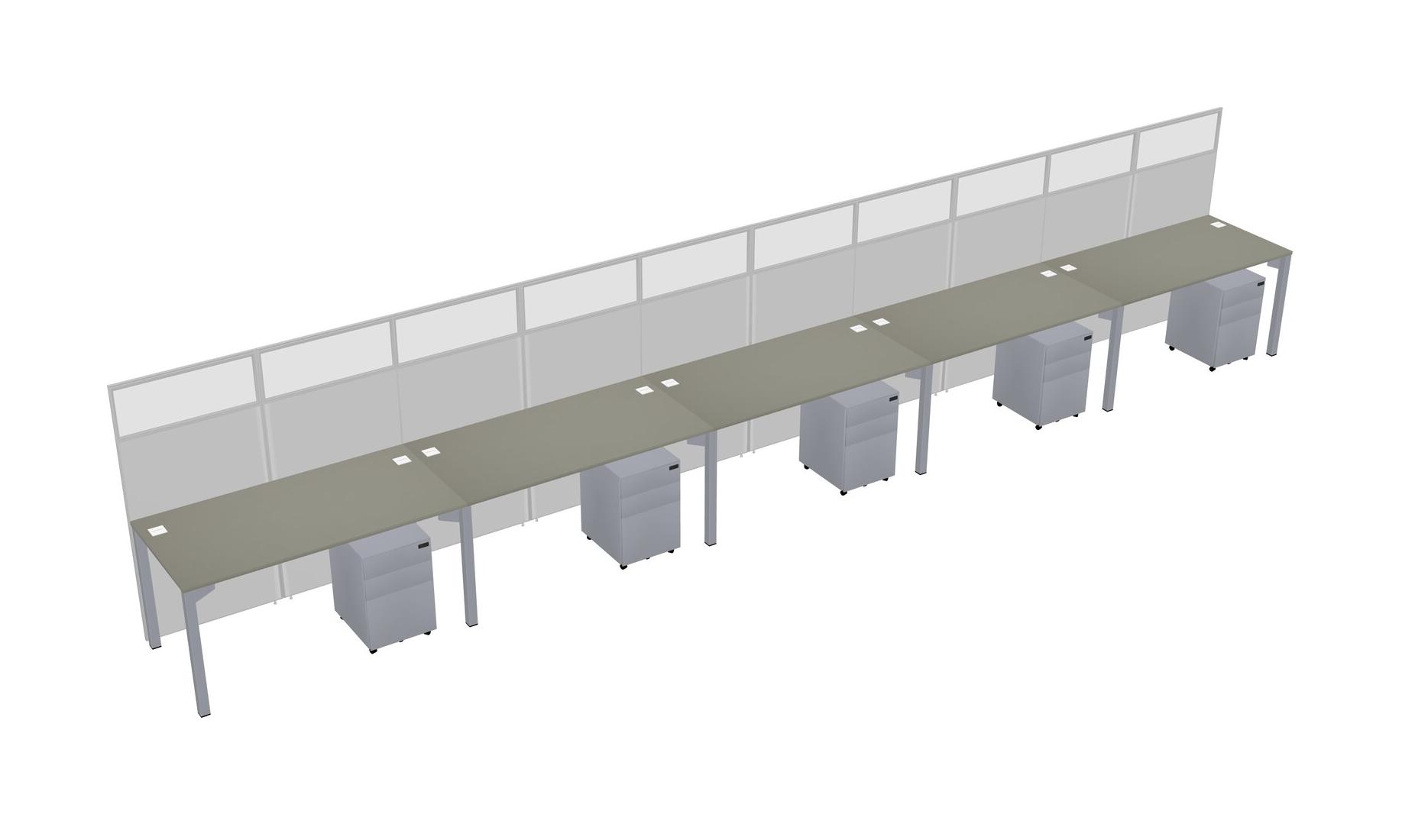 Grey Shadows Shared Rectangular Office Cubicle Panel System With Mobile Drawers For 5 Persons