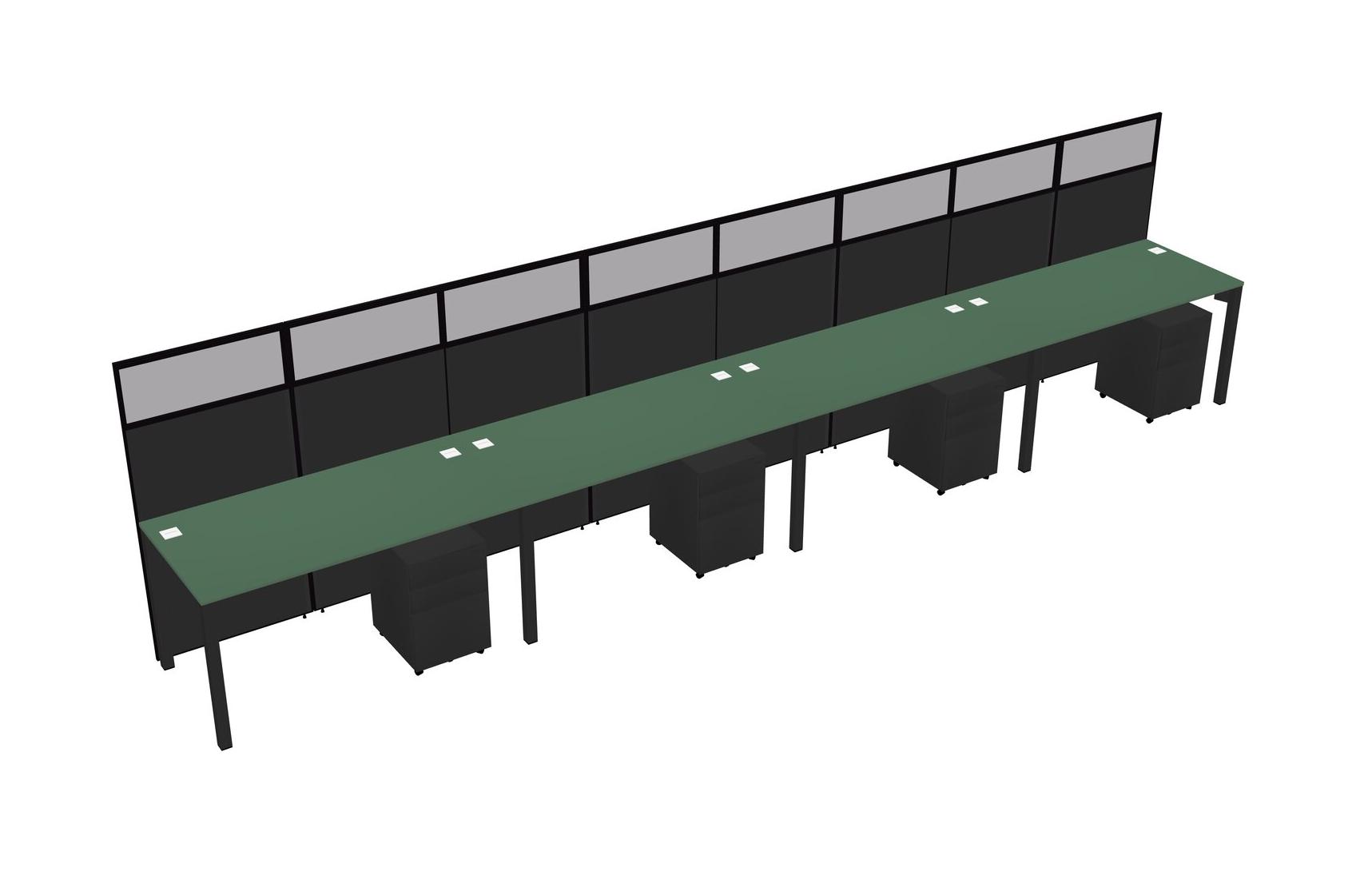 Green Shared Rectangular Office Cubicle Panel System With Mobile Drawers For 4 Persons