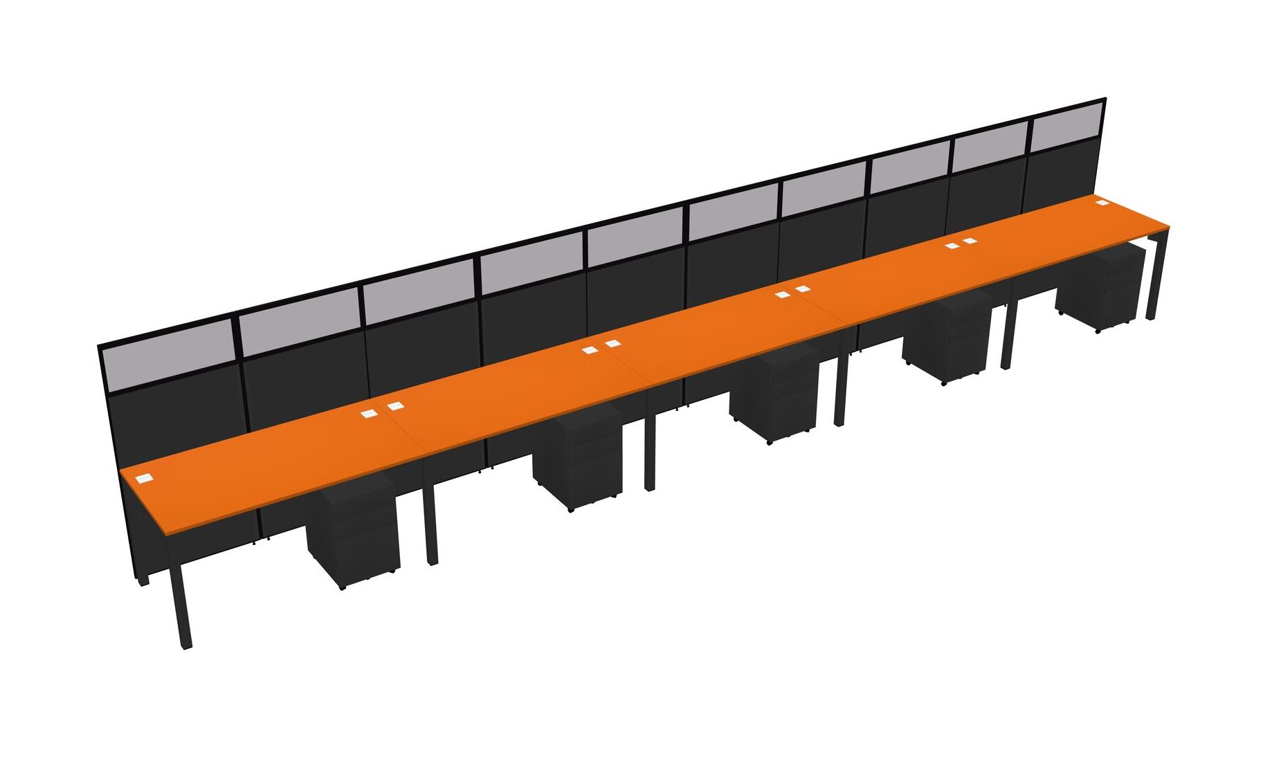 Orange Shared Rectangular Office Cubicle Panel System With Mobile Drawers For 5 Persons