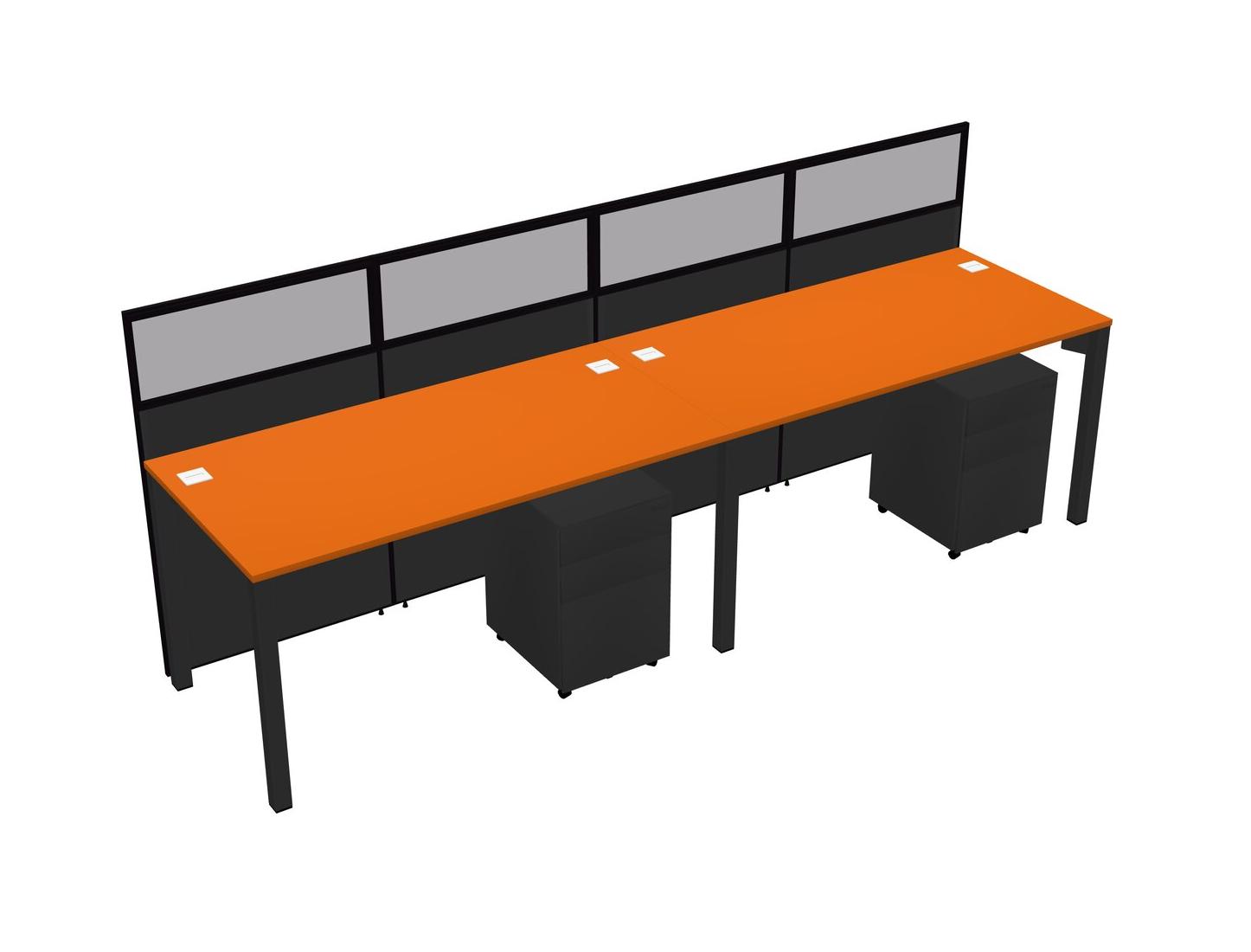 Orange Shared Rectangular Office Cubicle Panel System With Mobile Drawers For 2 Persons