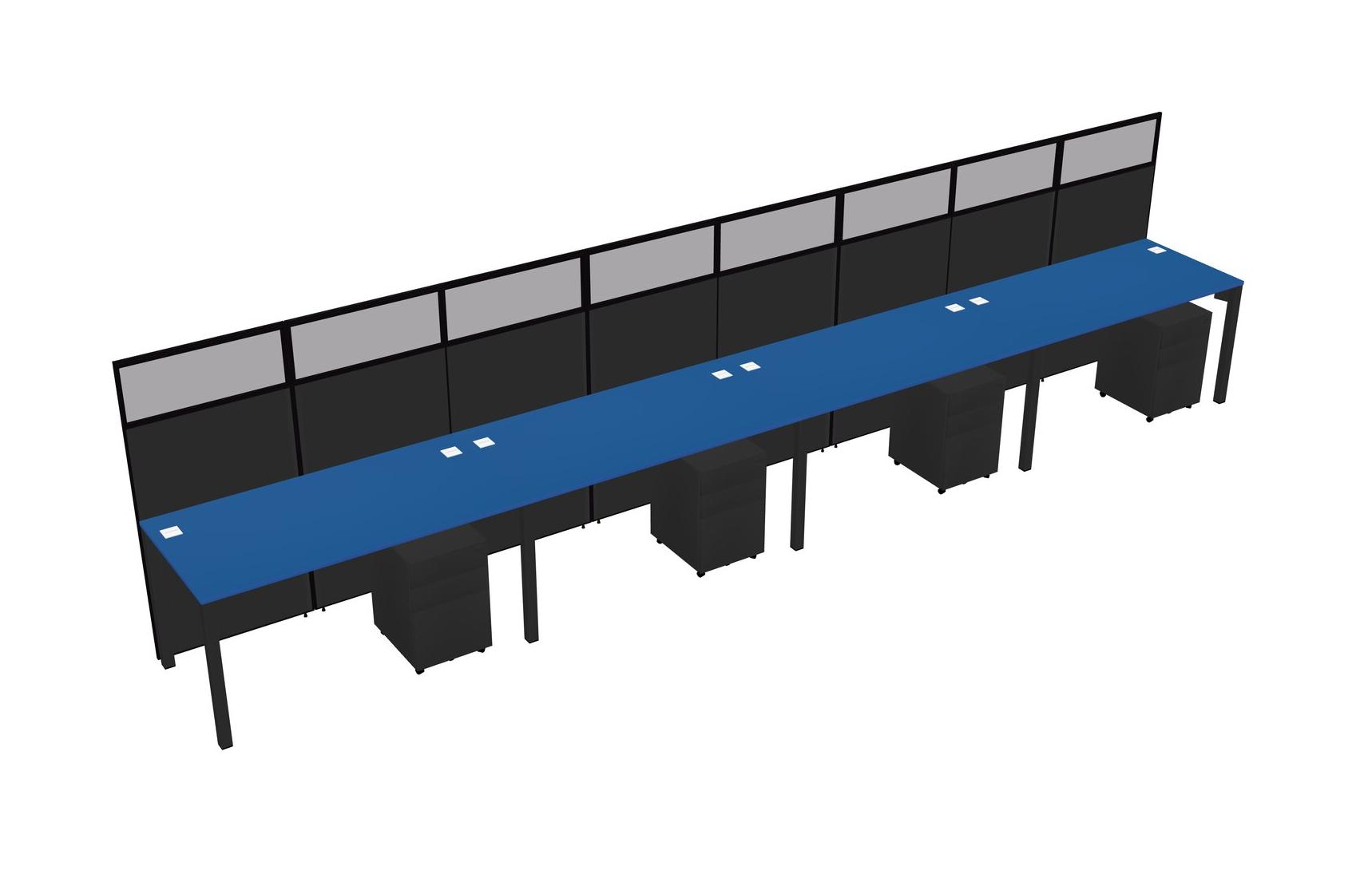 Prism Blue Shared Rectangular Office Cubicle Panel System With Mobile Drawers For 4 Persons