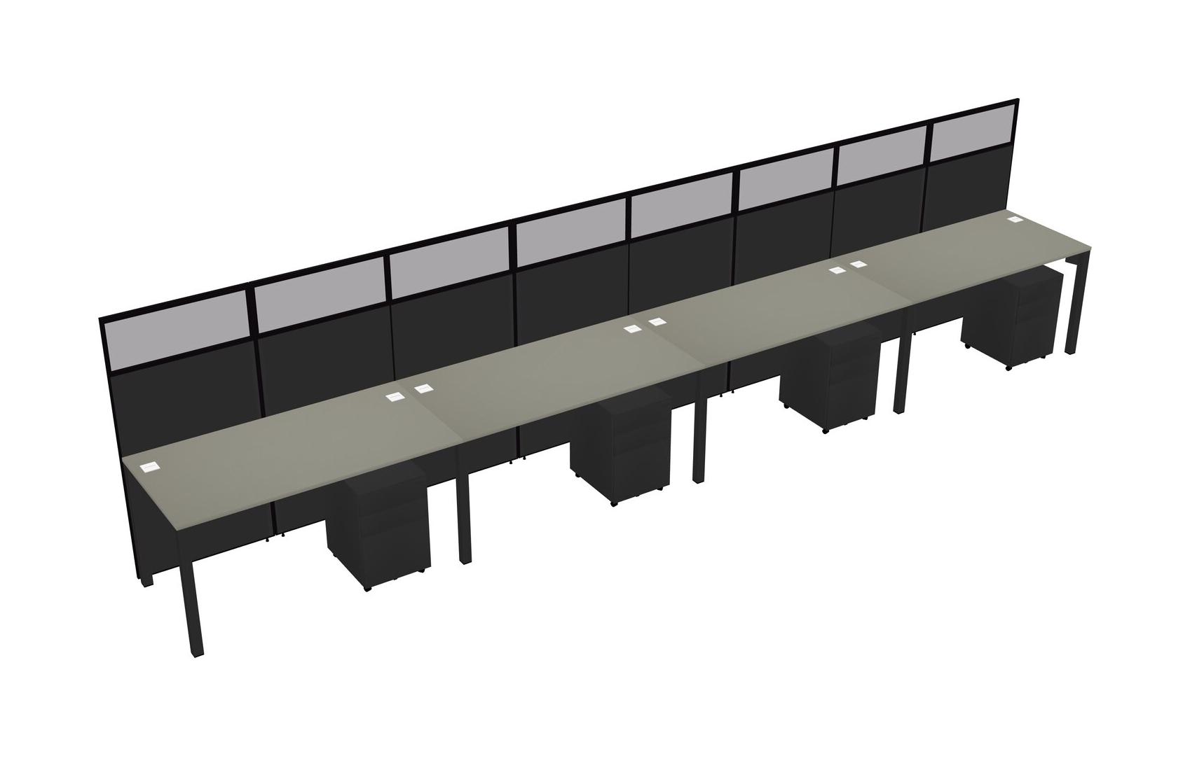 Grey Shadows Shared Rectangular Office Cubicle Panel System With Mobile Drawers For 4 Persons
