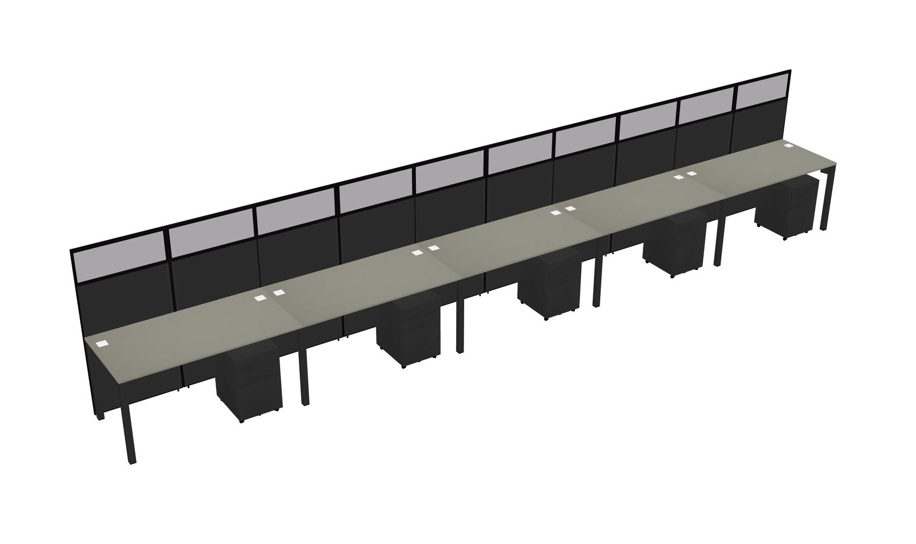 Grey Shadows Shared Rectangular Office Cubicle Panel System With Mobile Drawers For 5 Persons
