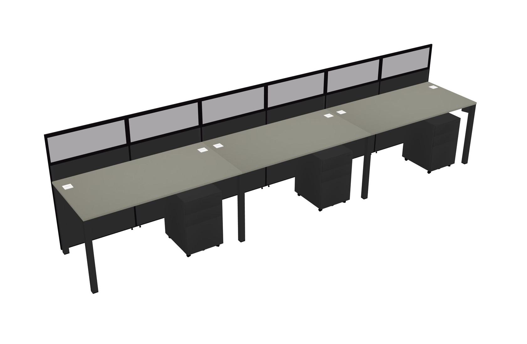 Grey Shadows Shared Rectangular Office Cubicle Panel System With Mobile Drawers For 3 Persons