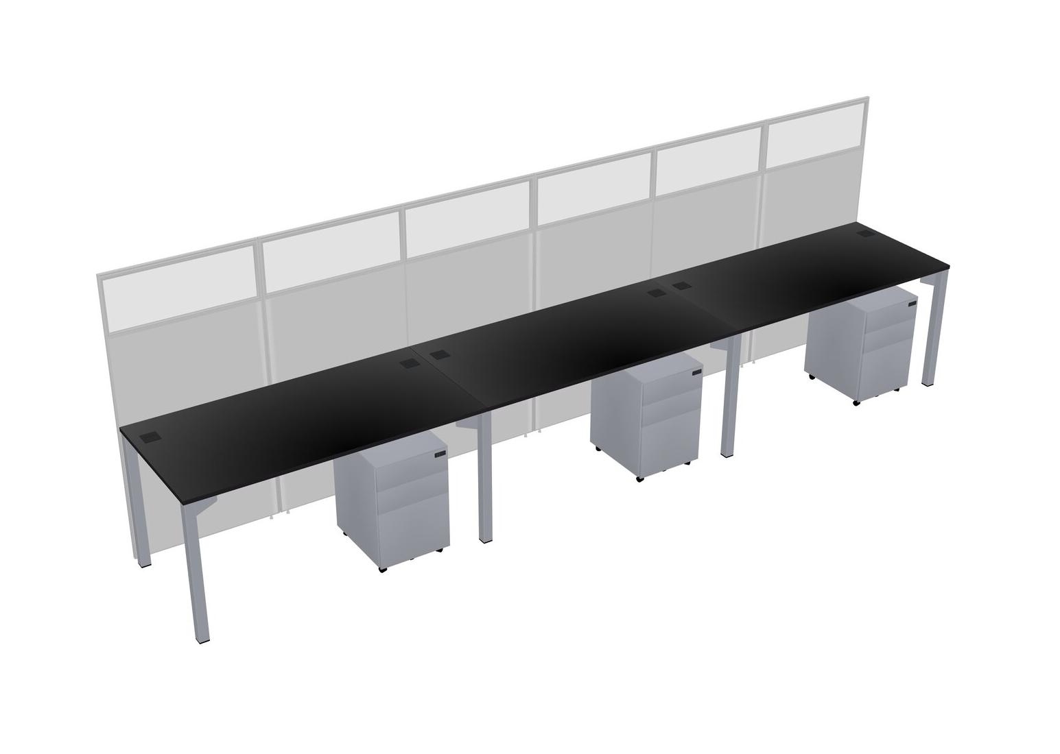 Black Shared Rectangular Office Cubicle Panel System With Mobile Drawers For 3 Persons
