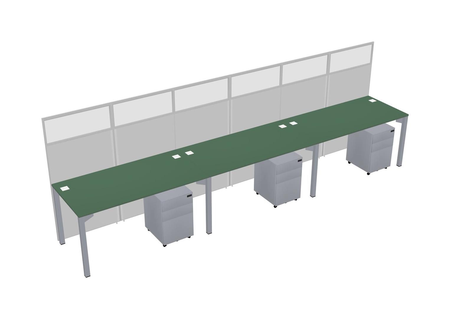 Green Shared Rectangular Office Cubicle Panel System With Mobile Drawers For 3 Persons