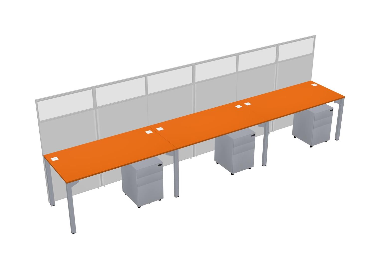 Orange Shared Rectangular Office Cubicle Panel System With Mobile Drawers For 3 Persons