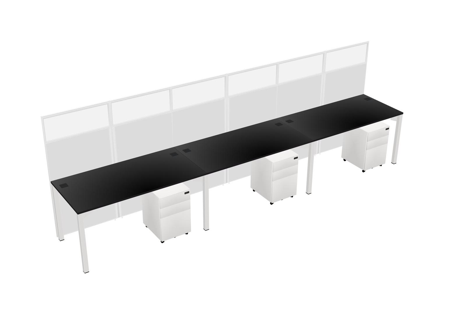 Black Shared Rectangular Office Cubicle Panel System With Mobile Drawers For 3 Persons