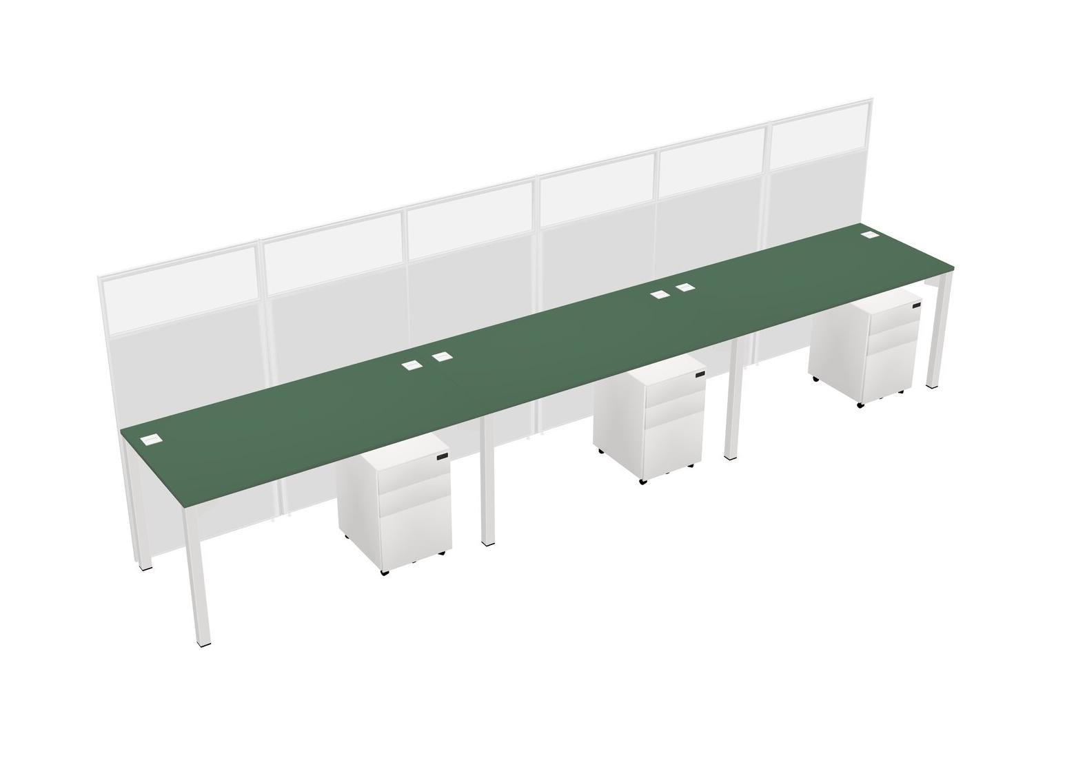 Green Shared Rectangular Office Cubicle Panel System With Mobile Drawers For 3 Persons
