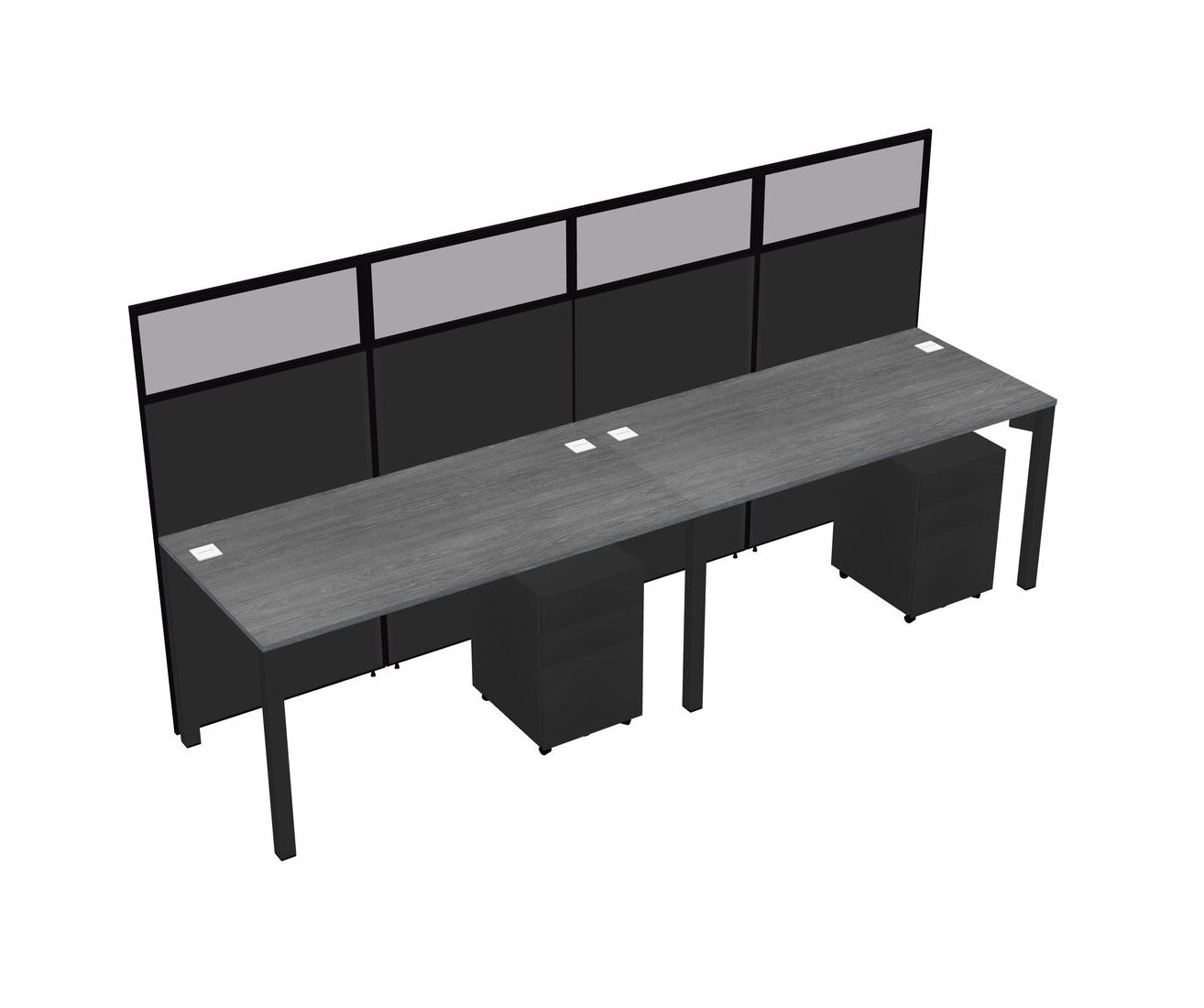 Grey Shared Rectangular Office Cubicle Panel System With Mobile Drawers For 2 Persons