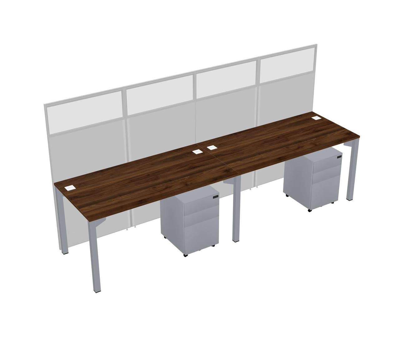 Columbia Walnut Shared Rectangular Office Cubicle Panel System With Mobile Drawers For 2 Persons