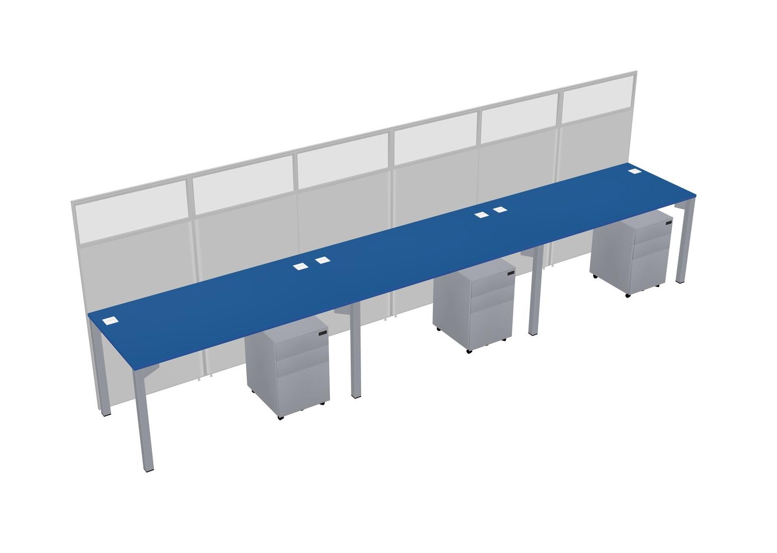 Prism Blue Shared Rectangular Office Cubicle Panel System With Mobile Drawers For 3 Persons