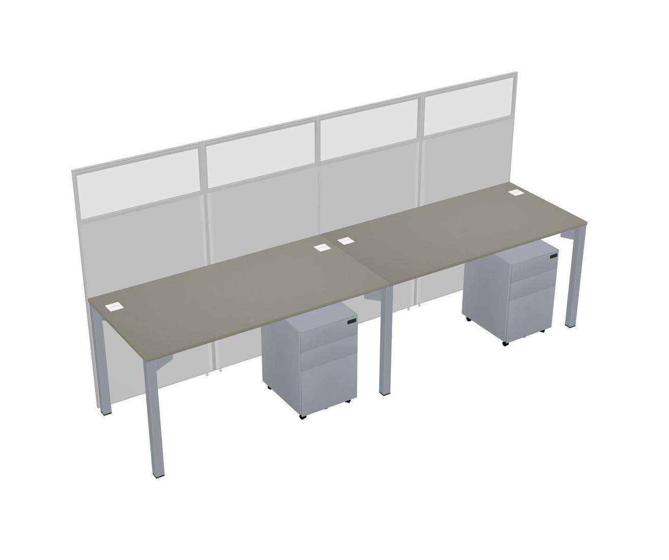 Grey Shadows Shared Rectangular Office Cubicle Panel System With Mobile Drawers For 2 Persons