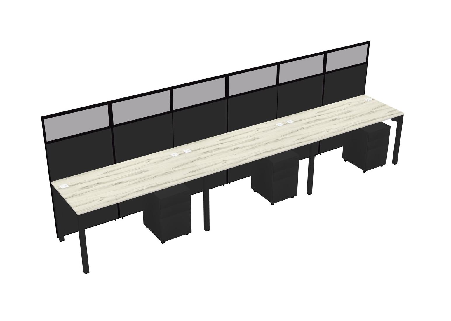 Heinne Holz Shared Rectangular Office Cubicle Panel System With Mobile Drawers For 3 Persons