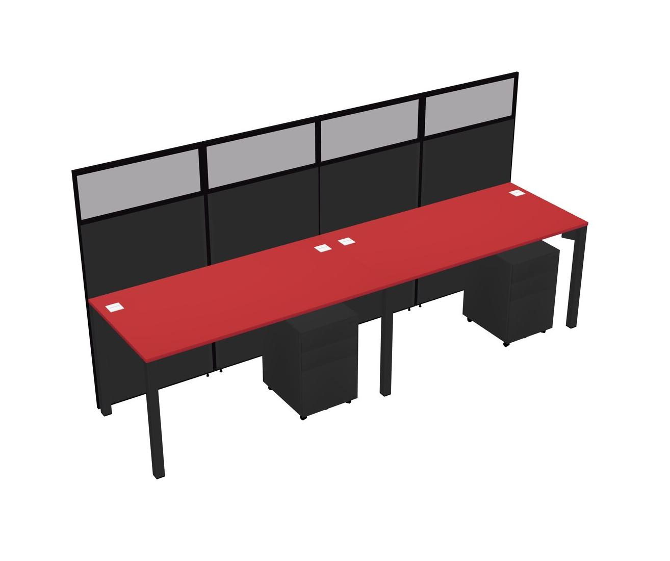 Prism Red Shared Rectangular Office Cubicle Panel System With Mobile Drawers For 2 Persons