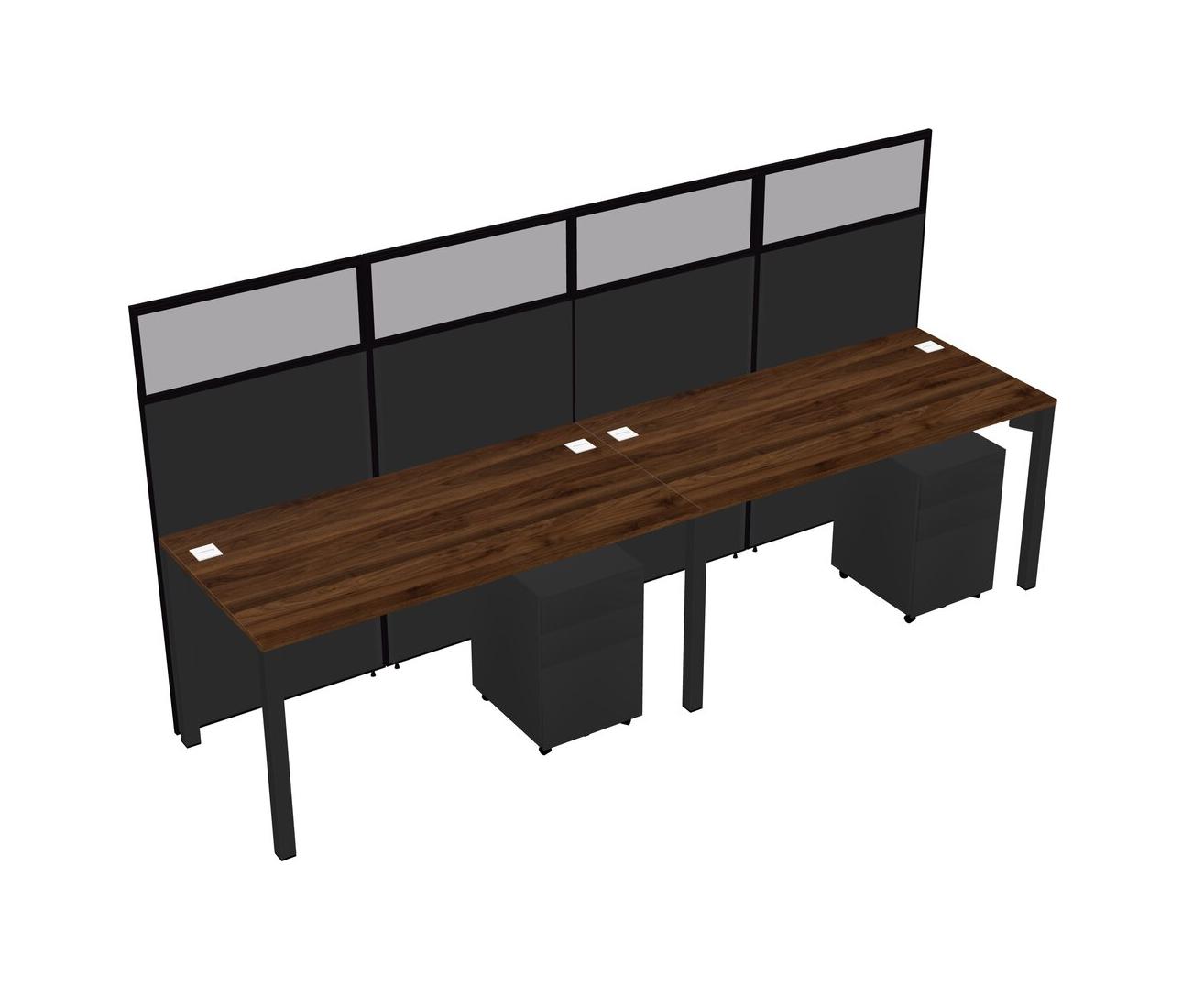 Columbia Walnut Shared Rectangular Office Cubicle Panel System With Mobile Drawers For 2 Persons