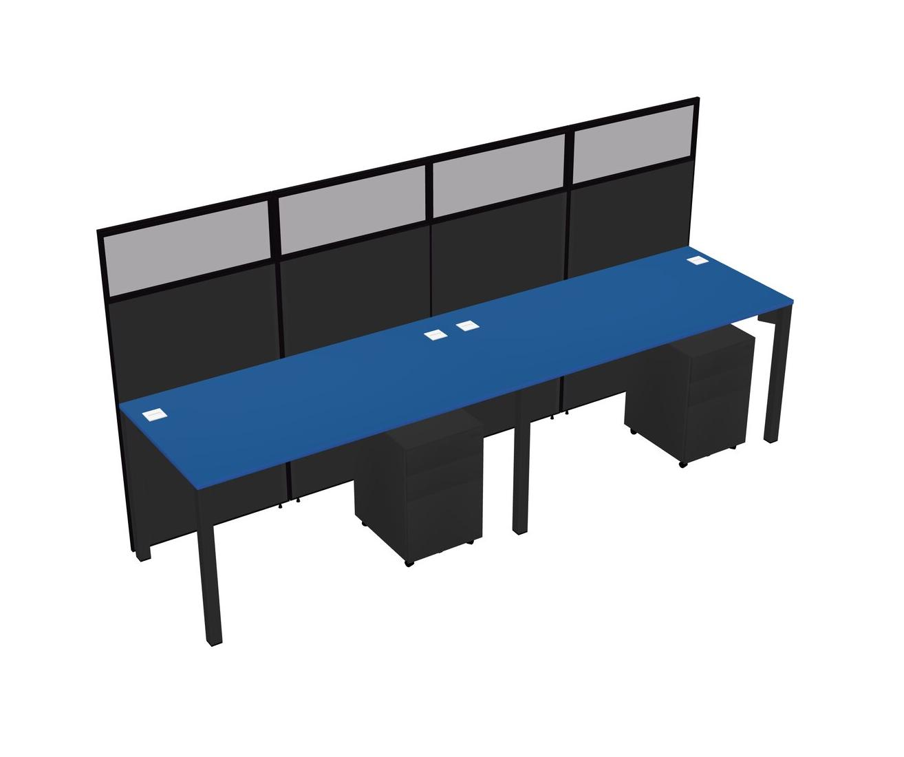 Prism Blue Shared Rectangular Office Cubicle Panel System With Mobile Drawers For 2 Persons