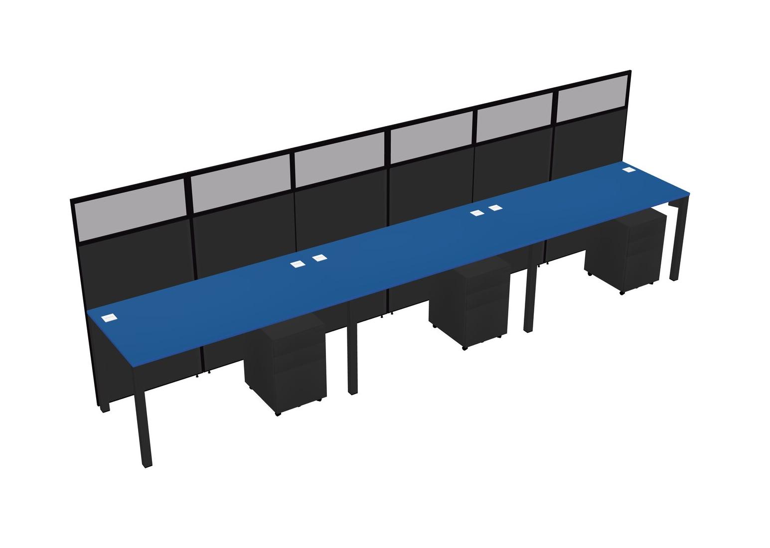 Prism Blue Shared Rectangular Office Cubicle Panel System With Mobile Drawers For 3 Persons