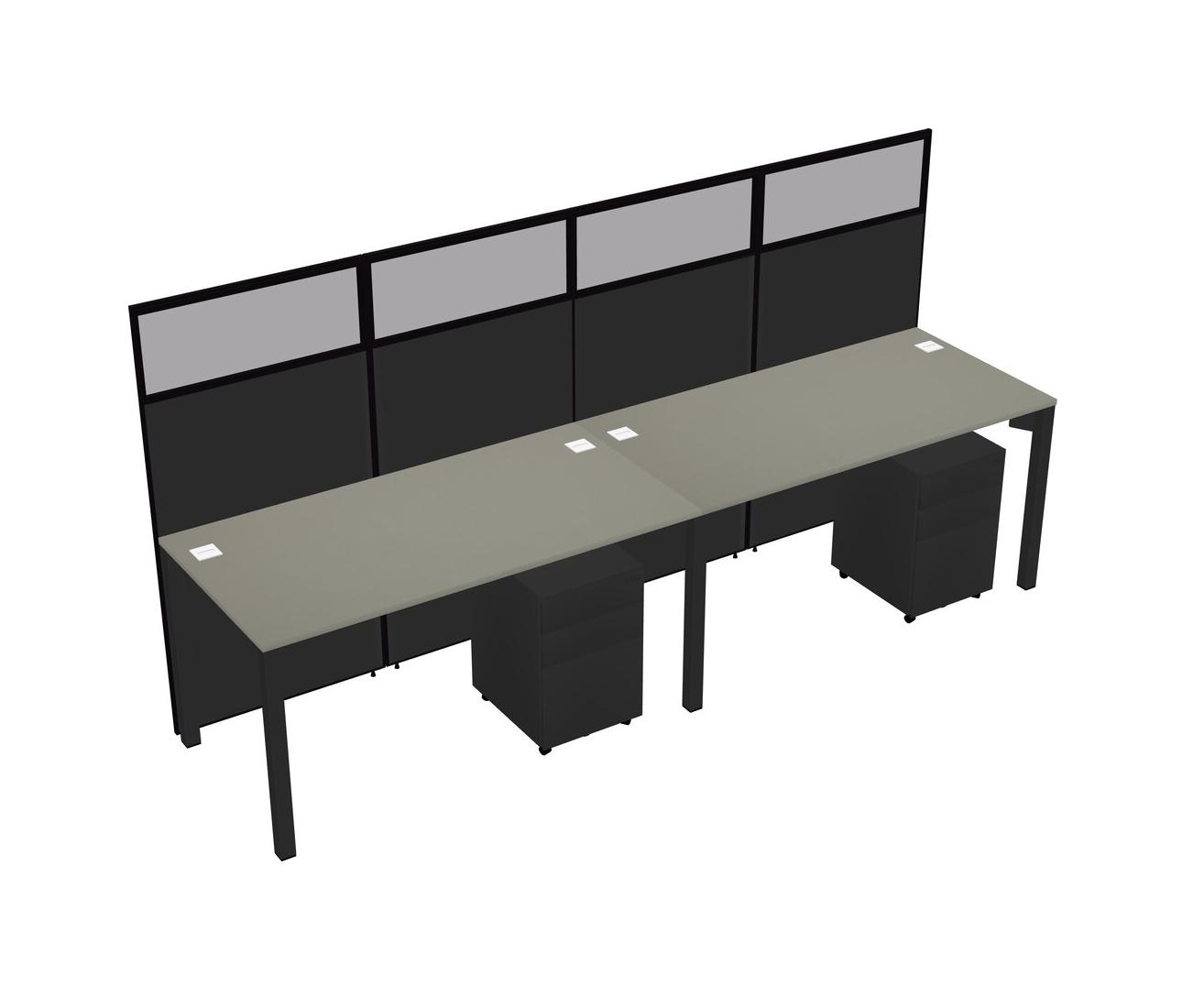 Grey Shadows Shared Rectangular Office Cubicle Panel System With Mobile Drawers For 2 Persons