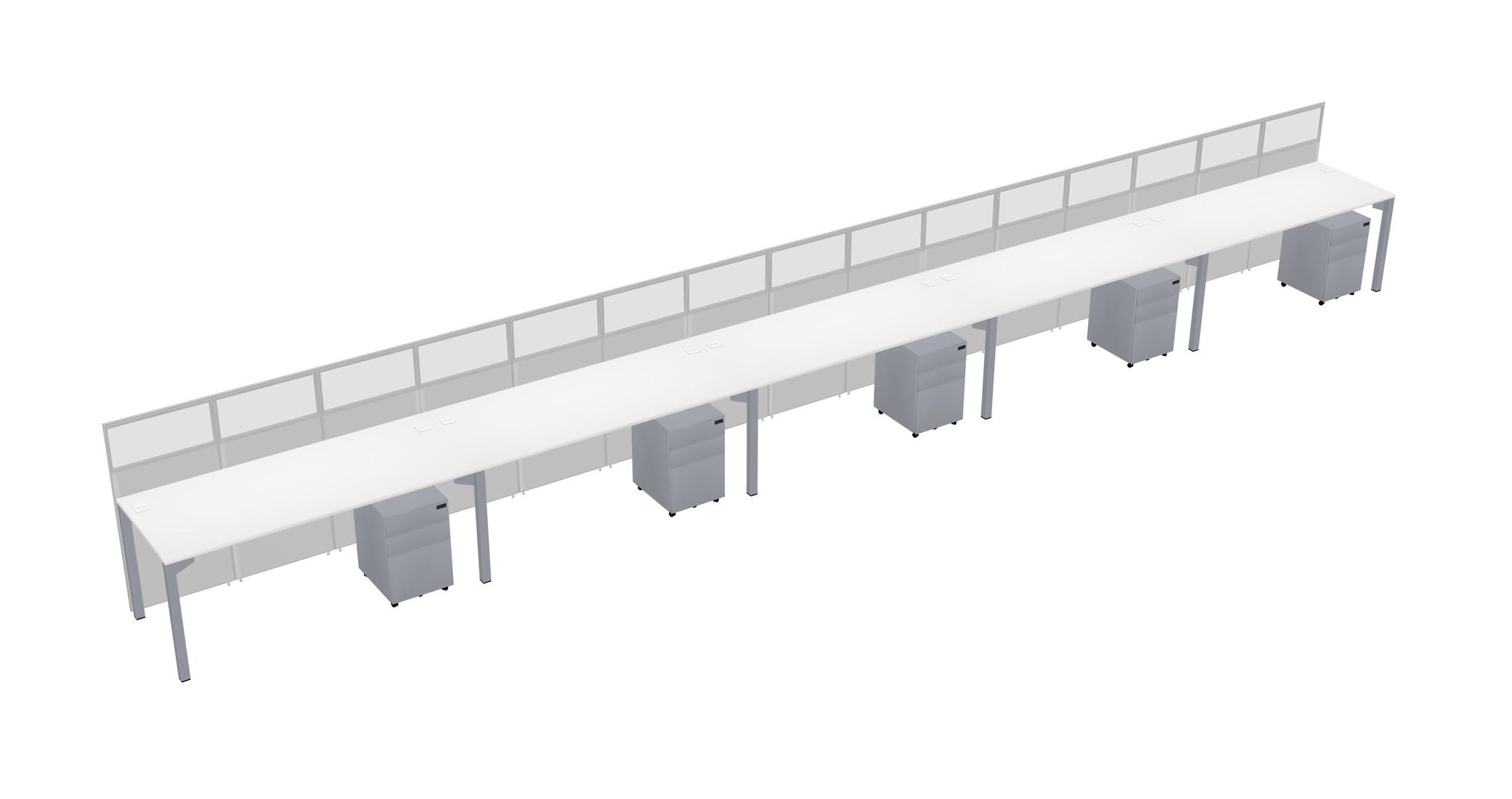 White Shared Rectangular Office Cubicle Panel System With Mobile Drawers For 5 Persons