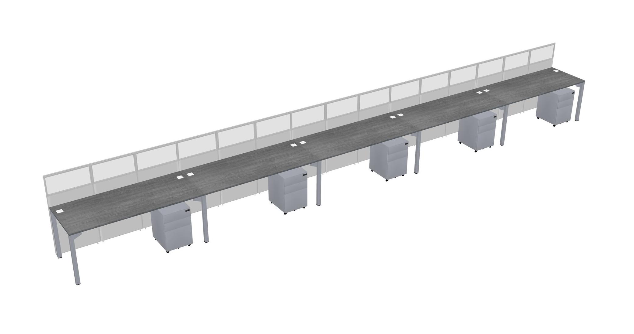 Grey Shared Rectangular Office Cubicle Panel System With Mobile Drawers For 5 Persons