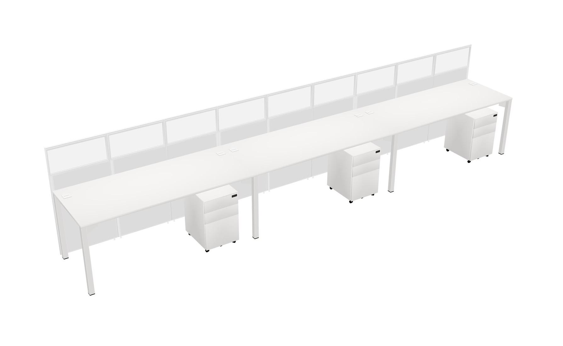 White Shared Rectangular Office Cubicle Panel System With Mobile Drawers For 3 Persons